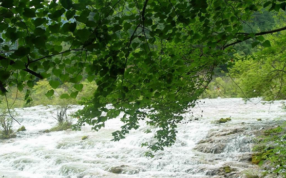 九寨沟珍珠滩据说,很久以前,一位过路的女神爱上了一位藏族青年,小伙子送她一串珍珠项链,女神回赠她一把开山斧。青年用开山斧开水渠引水,被天神知道后,勃然大怒,派兵来捉拿女神,一把扯断了她脖子上的项链,珍珠纷纷落地,化作美丽的珍珠滩。